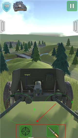 2、点击下方的瞄准镜进入瞄准状态和发射炮弹。