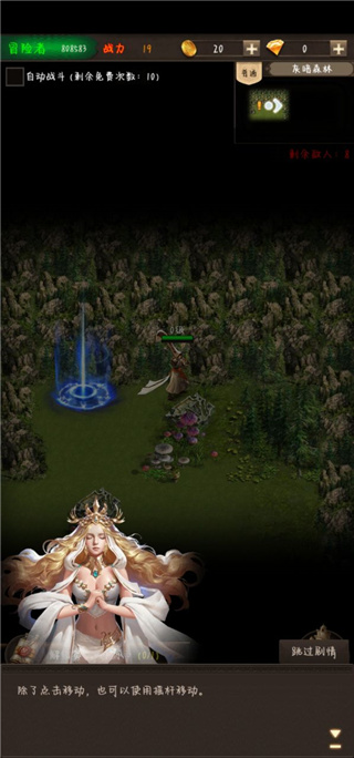 6、进入后先学习移动,点击地图进行移动;