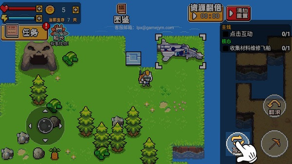 游戏背景:意外坠机荒岛的主人公需要在岛上生存下去,收集资源打造武器,收集宝石修复飞船,最终成功逃出!