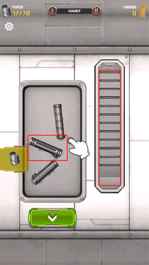4、放置好该零件后,点击下箭头按钮再次将其他的零件拖到到右边组成光剑手柄;