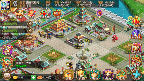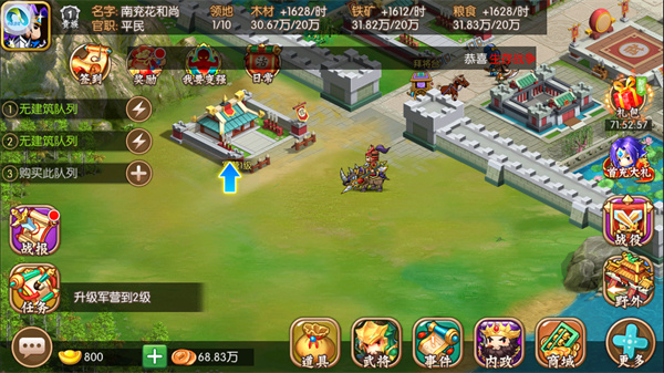 游戏中,资源获取是关键,玩家需要通过占领野地或提升产量来获得更多的资源支持。中立城的功能往往被忽视,但其实能极大增强资源产量和防御能力。游戏的特色包括丰富的阵容搭配、趣味的武将养成系统以及多样的建筑玩法,让三国世界充满乐趣。