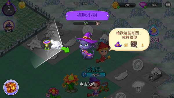 3、收集游戏里更多物品,让你的女巫在游戏中升级变强,帮助你轻松应对游戏难关。