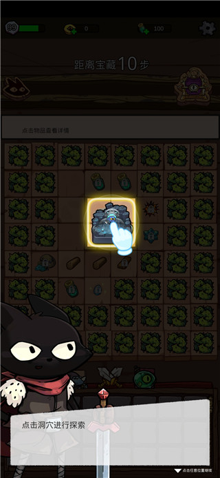 1、开始游戏后,点击地图上的洞穴进行探索,每次探索都会弹出额外的道具。