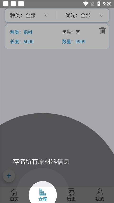 3、在历史板块里面,你所保存的算料以及优化记录,都能在这里找得到。