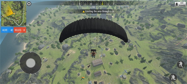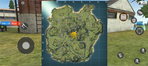 5、下来之后控制虚拟键让人物进行移动,并拾取地图的枪械武器来消灭其他对手;