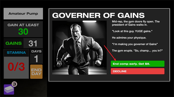 健身模拟器手机版(GET YOKED)是一款由Steam移植而来的Roguelike元素卡牌构筑类游戏,在游戏中,您将扮演一名瘦弱角色,怀揣着向健美冠军目标迈进的梦想开启旅程。健身模拟器手游中玩家可扮演四个初始健美运动员之一,他们各自拥有独特牌组和游戏风格,你需要通过完成比赛,解锁短裤、纹身、发型、鞋子和手套等,对角色进行个性化定制。