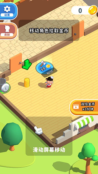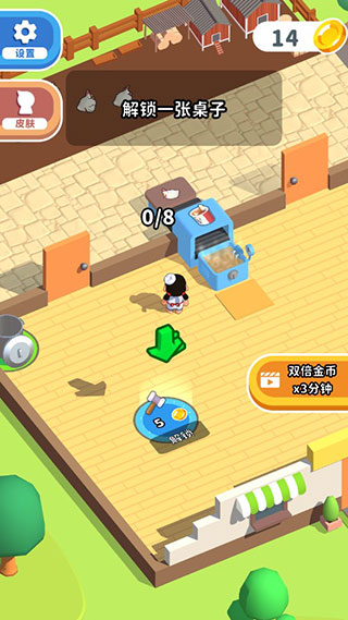 1、打开游戏,我们来到一家餐厅,旁边还有一些金币,我们移动角色来拾取金币。