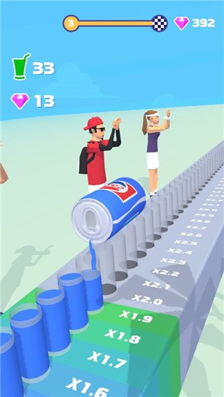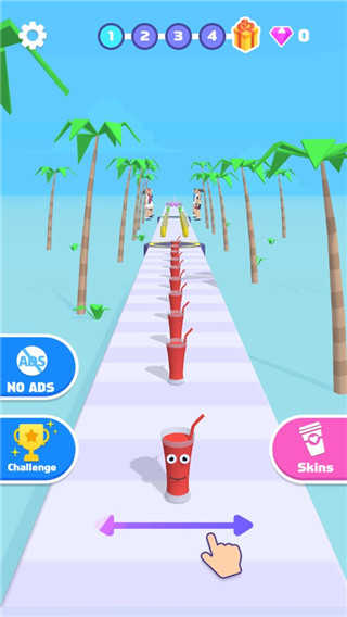果汁冲冲冲官方版是一款很简单、轻松的跑酷运动手游,游戏在画面上采用3D卡通风格设计而成,画面精致清新,玩法简单容易上手。在游戏中玩家需要左右滑动,控制果汁在道路上进行前进,在沿途的路上收集颜色相同的果汁,果汁会越来越多,要是收集到颜色不一样的果汁,则会越来越少,同时路途还会出现陷阱,玩家还需要小心应对,快到最后关头的时候玩家还可以收集钻石,方便后期为自己的果汁店进行装修和进货,然后就可以将刚刚收集到的果汁进行装杯,之后便可获得相对应的奖励,收集的果汁越多,最后所能够获得的分数也就会越高。果汁冲冲冲游戏内玩家还可以选择不同的皮肤进行游戏,这样不会让玩家觉得单调,同时游戏采用了竖屏的操作方式,让玩家可以随时随地进行玩耍,充分利用碎片化时间。喜欢的玩家还在等什么,快来下载果汁冲冲冲游戏体验一下试试看吧!果汁冲冲冲官方版特色