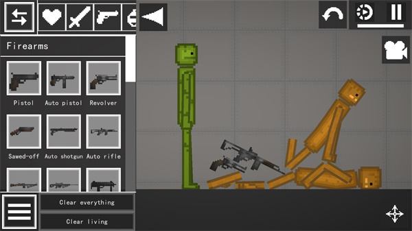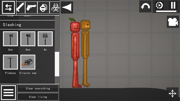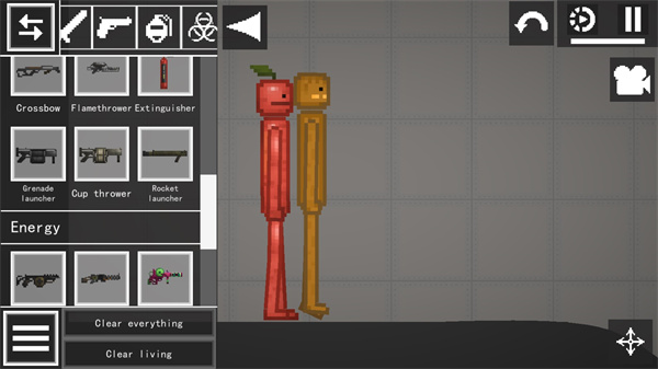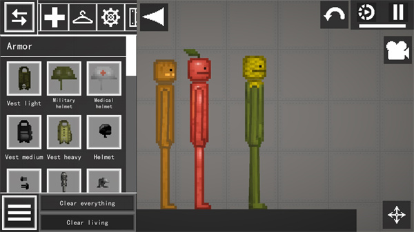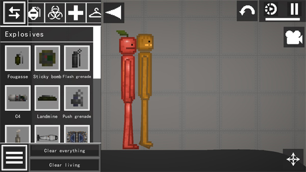 4、这里有不同的人物、武器、炸弹、刀剑、注射器、装甲等等资源供玩家们体验,将人物拖到场景中即可;