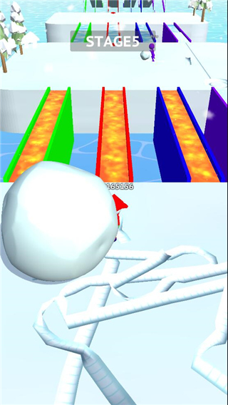 2、一直拉动游戏中的小人物获得雪球,拉的越久雪球越大。