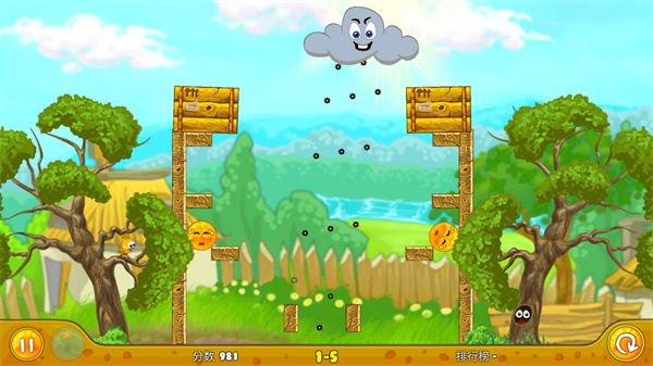 另外,在保护橙子游戏中拥有多个场景需要大家解锁,而每个场景都有大量的关卡,当然每一个关卡里面出现的谜题都是不相同的,并且每一个关卡里面都会添加了许多新的元素。总之,在这里玩家可以通过使用关卡中的场景道具和机关,将一个个橙子团团保护起来,不只需要遮住上面,左右也要遮护,不让黑雨污染到就可以了,橙子被乌云污染了的话就游戏失败了,发挥你的聪明才智保护橙子吧!
