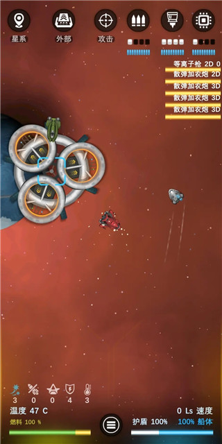 1、自动攻击:点击攻击显示武器系统然后选择一个目标,最后点击自动驾驶。新手建议去LHS 223恒星系发展,有两个空间站而且离恒星近,注,该地为冲突地区,初期十分适合跟在正规军后面打星盗刷赏金(红名星盗十分可恶,在你装载有一定货物时会大概率对你发起攻击想要掠夺货物,反之当你货仓什么也没有时红名固定中立无视你)。