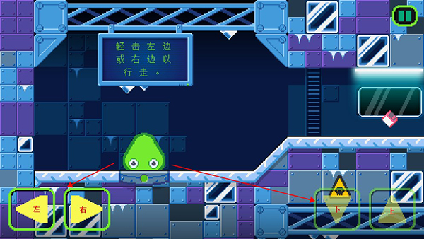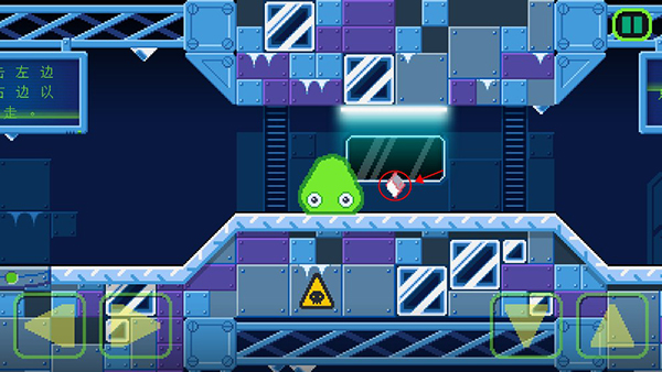 玩家通过左右两边的上下左右按钮可以控制史莱姆左右移动,跳跃和收缩。