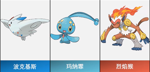 游戏开始不久后,可以从博士手中选择三宝作为同伴之一,选择对游戏进行没有多大影响,一般来说火属性的火球鼠在各个战斗内会较为活跃,而且透过提升等级其将其进化,初期三宝均可以成为阵中主力直至破关为止。初期三宝不会在野外找到,「时空歪曲」有机会让它们随机出现,但其实只要在游戏破关后,再次回到总部与博士对话,便能取得另外两只初期的宝可梦。
