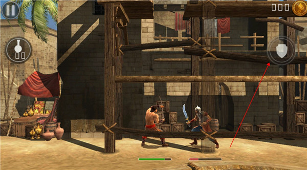 7、点击右边盾牌按钮可以进行防御,敌人处于防御状态的时候不要攻击,不然会被直接格挡反击