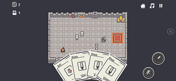 操作简单,左手移动角色,右手控制攻击和闪避。玩家可以通过击杀怪物或购买获得卡牌,但用完就没了,增加了策略性和挑战性。