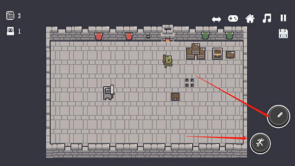 2、游戏中通过左手操作角色移动,右手有攻击和闪避键,玩家可用攻击键攻击敌人,闪避键可躲避随时可能出现的攻击;