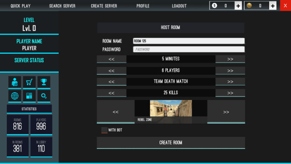 1、首先进入游戏后,点击下方的create room建立房间