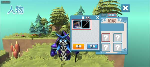 8、玩家可以点击道具下的“?”,再选择一个道具点击装备来装备武器;