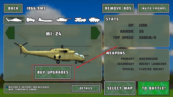 3、当购买成功后,点击【BUY UPGRADES】可进行武器升级