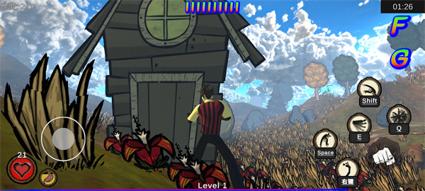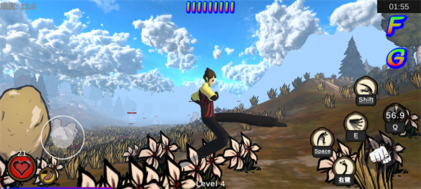 2、你需要通过右侧的攻击、跳跃等按钮进行操作,击败各种野兽;