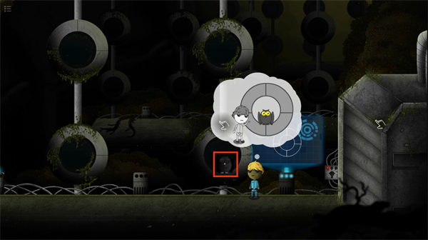 4、这时猫头鹰会苏醒,然后飞走掉落一个红色装置,放入铁门前即可打开铁门;