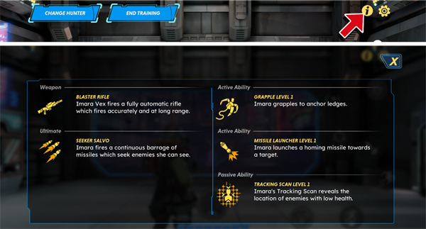 对局进行时,你也可以点击右上角的(i)信息按钮以查看猎手的技能。
