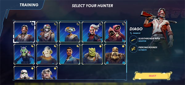选择你想尝试的猎手之画像,便可使用所选的猎手继续训练。