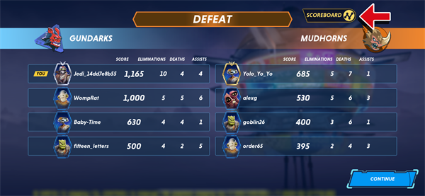在赛后流程里,你也可以点击“积分榜”(i)信息按钮来查看积分榜。