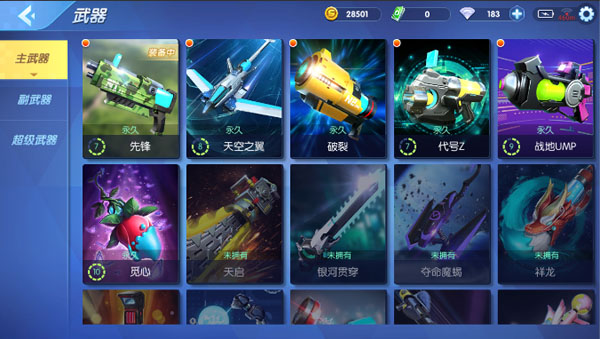 武器分为:主武器、副武器和超级武器三大类。