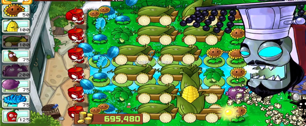 2、玩家需要合理种植各种植物,阵容强大,阻挡僵尸攻击,让他们永远停在你的院子前。