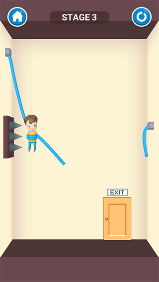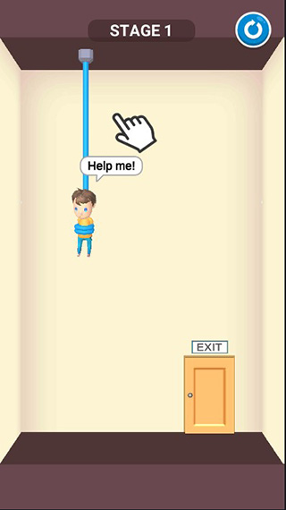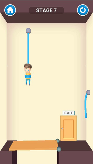 1、小朋友太调皮了一步小心进入了充满陷阱的房子内现在被房顶的绳子给捆住了。2、需要你们的帮助,你们将会有一把剪刀,需要剪断绳子避免陷阱就出小朋友。