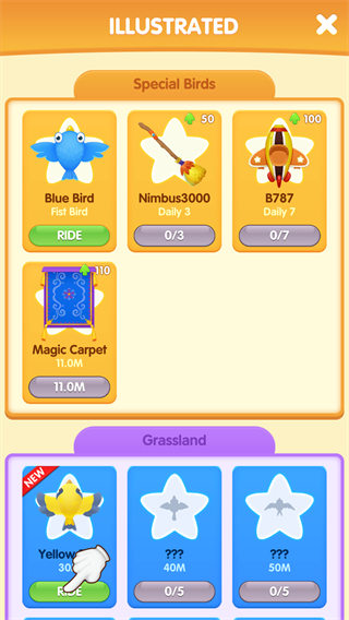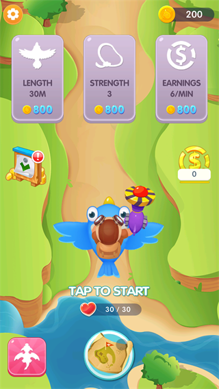 1、玩家们是可以选择自己的角色道具的,在商城中买等级更加厉害的工具,可以为自己的桶关任务提高分数。2、整体的玩法就像是天空版的捕鱼达人一样,在游戏中飞上天空然后开始用手中的捕获网捕捉鸟类。