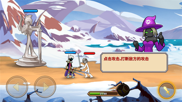 3、与海量的怪物进行战斗,升级你的火柴人,获得更多强大的英雄。