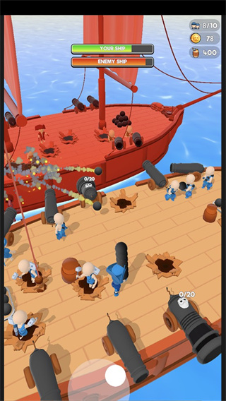 2、可以和海盗们展开大战,指挥所有船只进行攻击,快速击退海盗们。