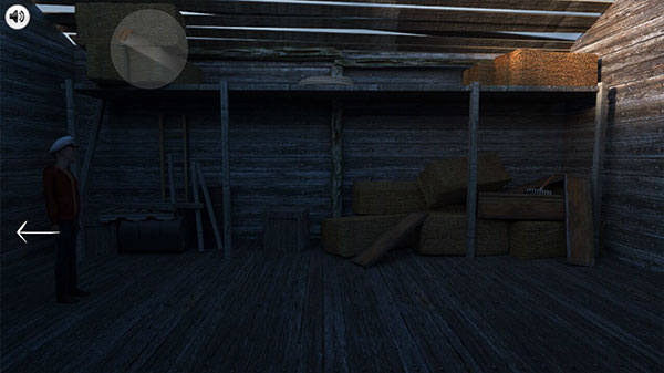 5、点击木屋的门,进入后获取钉耙、用梯子上去获取绳索。