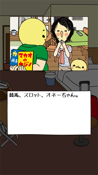 1、玩家在游戏中要扮演一个不务正业的爸爸因为工作做不来整天玩所以很忙直到有一天银行不借钱了他就去跟高利贷借钱然后开始了赌博还债的日子2、在游戏中有各式各样的赌博方式像是赛马拉霸彩票跟刮刮卡我表示每一种都试过了只有刮刮卡跟赛马比较好赢但也都是十赌九输