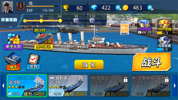 1、双击打开战舰模拟器手机版,点击战斗即可开始游玩;