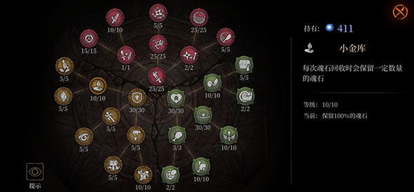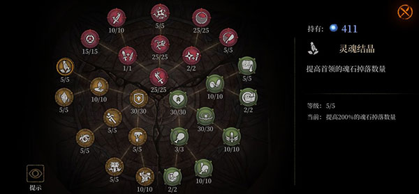 2、第二个优先加满的天赋是灵魂结晶。这个每级能提升boss20%的魂石掉落,加满后一共是提升100%。