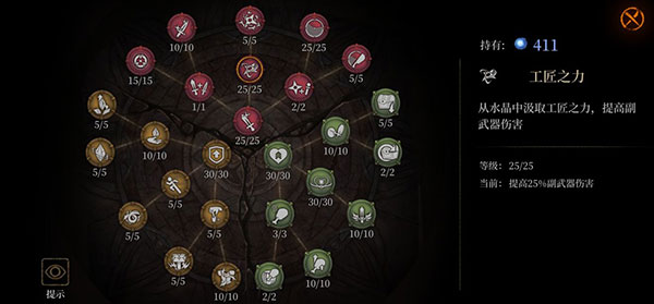 5、幸运恩赐和工匠之力。相信大家都知道,打到后期我们可以体验秒boss的快感,而这种秒杀大多来自副武器的强大,所以提升副武器强度是后期必不可少的!