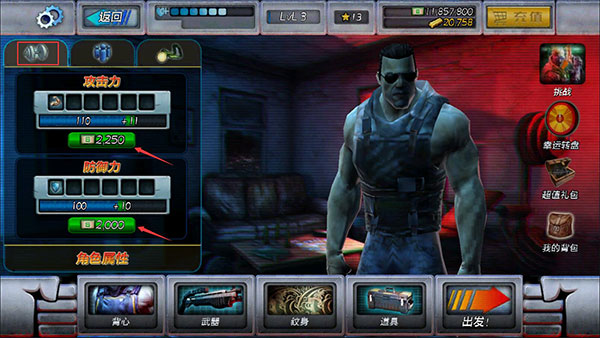 2、这时候可以看到左侧的角色属性栏里,我们可以花费钞票来对攻击力和防御力等属性进行强化。
