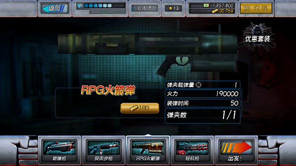 7、点击武器按钮后,可以为角色选择不同的武器进行装备,不同的武器伤害火力也不一样。