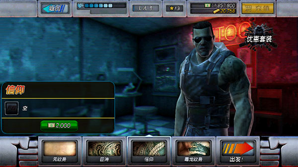 6、点击背心按钮后,可以为角色选择不同的背心进行装备,不同的背心防护效果也不一样。
