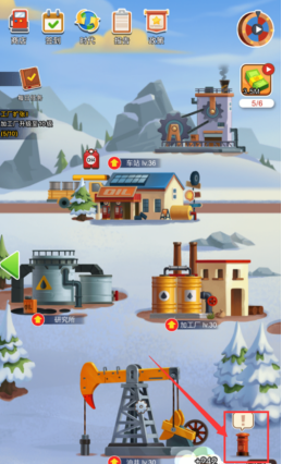解锁第二时代后可点击加工厂或者油井点击右上角即可打开油井界面,或者点击如图山上的建筑即可打开蒸汽机。