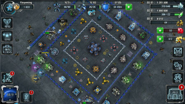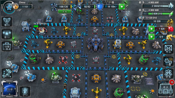 3、用激光塔、导弹发射台、大炮、城墙以及地雷防御基地