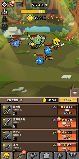 6、武器解锁后会自动帮我们攻击怪物,这也是游戏放置玩法的体现。