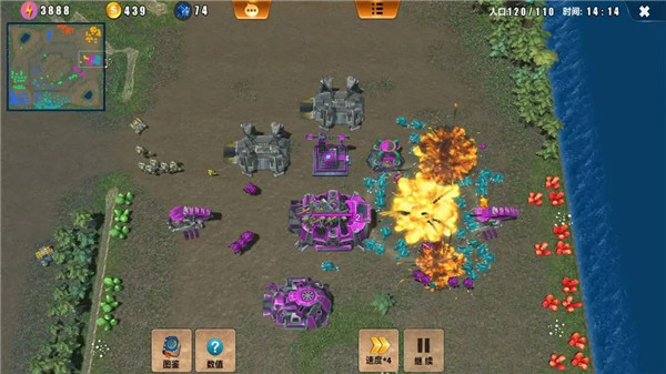 游戏中的地面、空中、近战和远程兵种相互配合,需要玩家灵活运用战术调整兵种组合,克敌制胜。