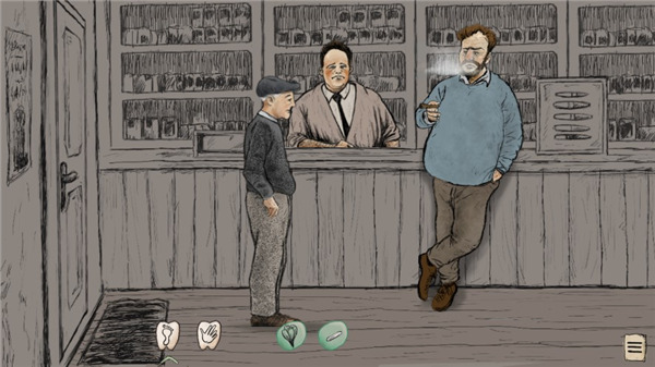 2、然后进入游戏,这里有足印和手掌,点击手掌可以和人物进行对话,还可以拿东西,足印可以在对话完成之后进入下个剧情;