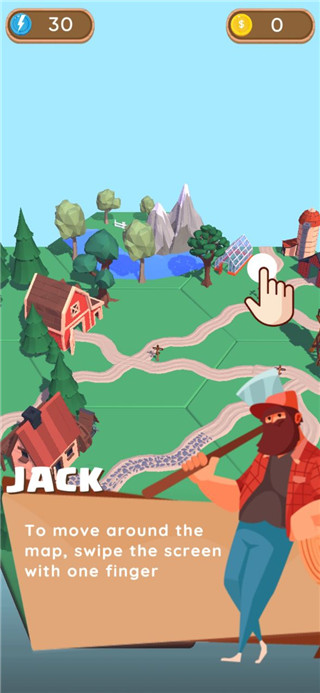 1、首先进入伐木工人挑战游戏,这里会有新手教程教你怎么玩,需要在地图上移动,用一个手指滑动屏幕,双指向内收缩屏幕;