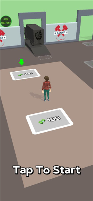 1、首先进入武器制造大师最新版,点击屏幕,左右控制人物移动;